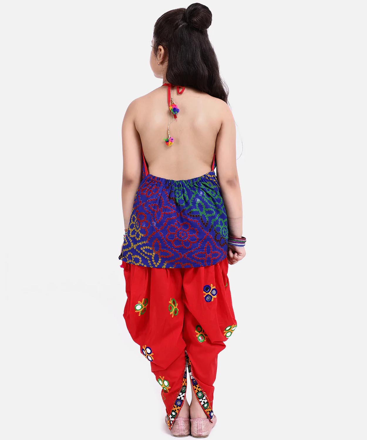 Bandhani Halter Top With Embroidery Dhoti-Red