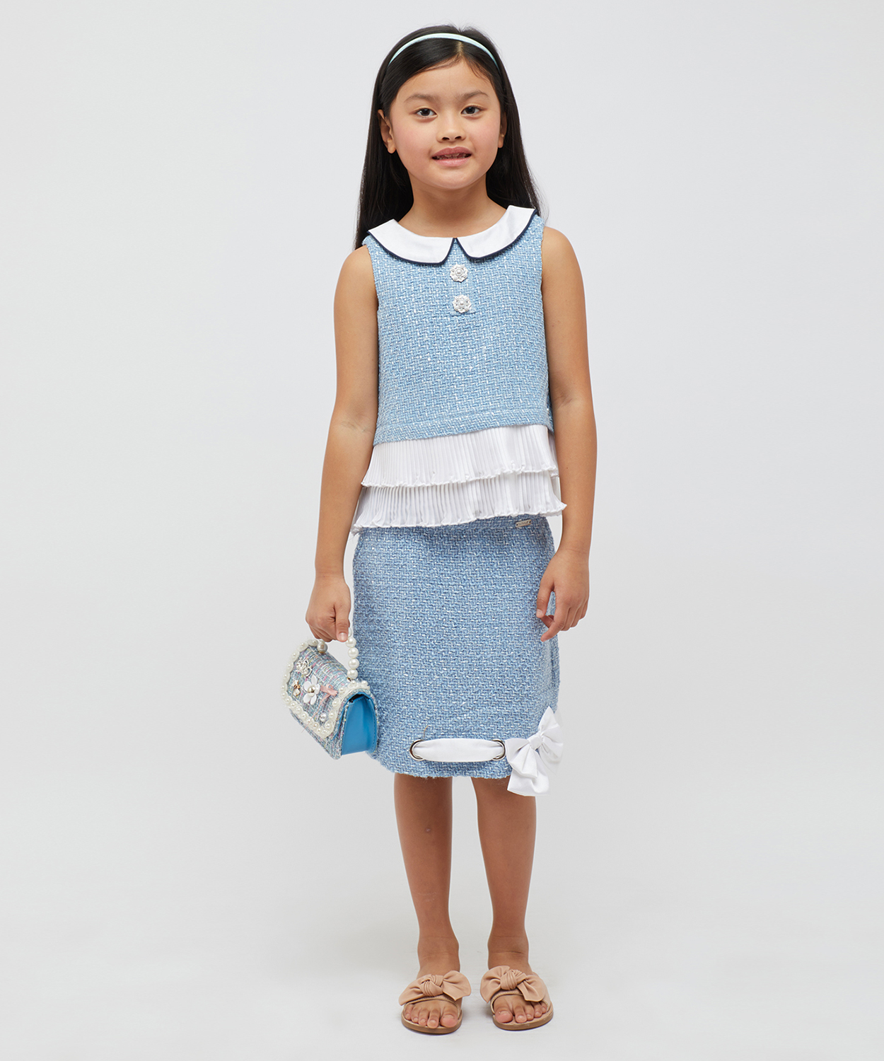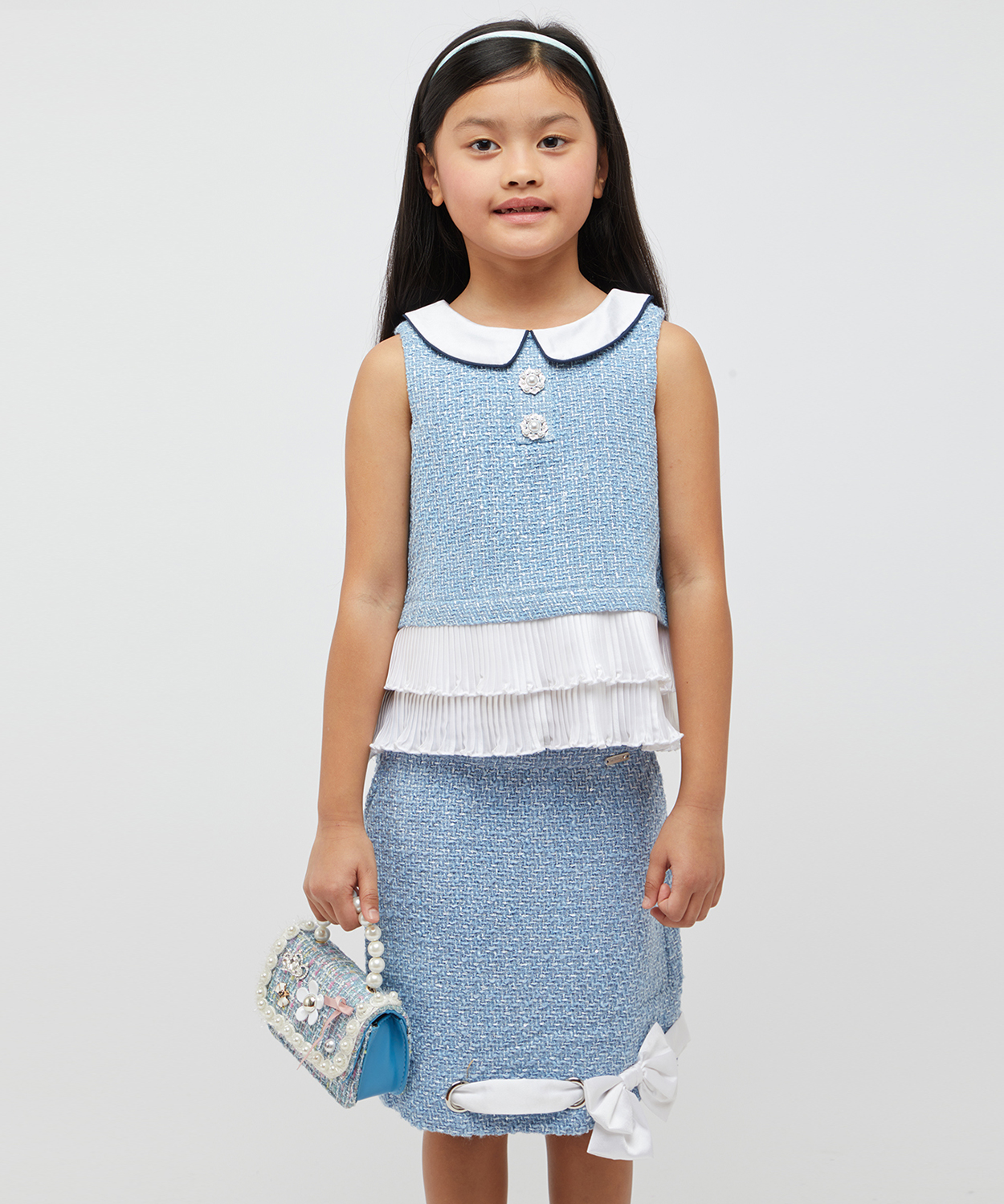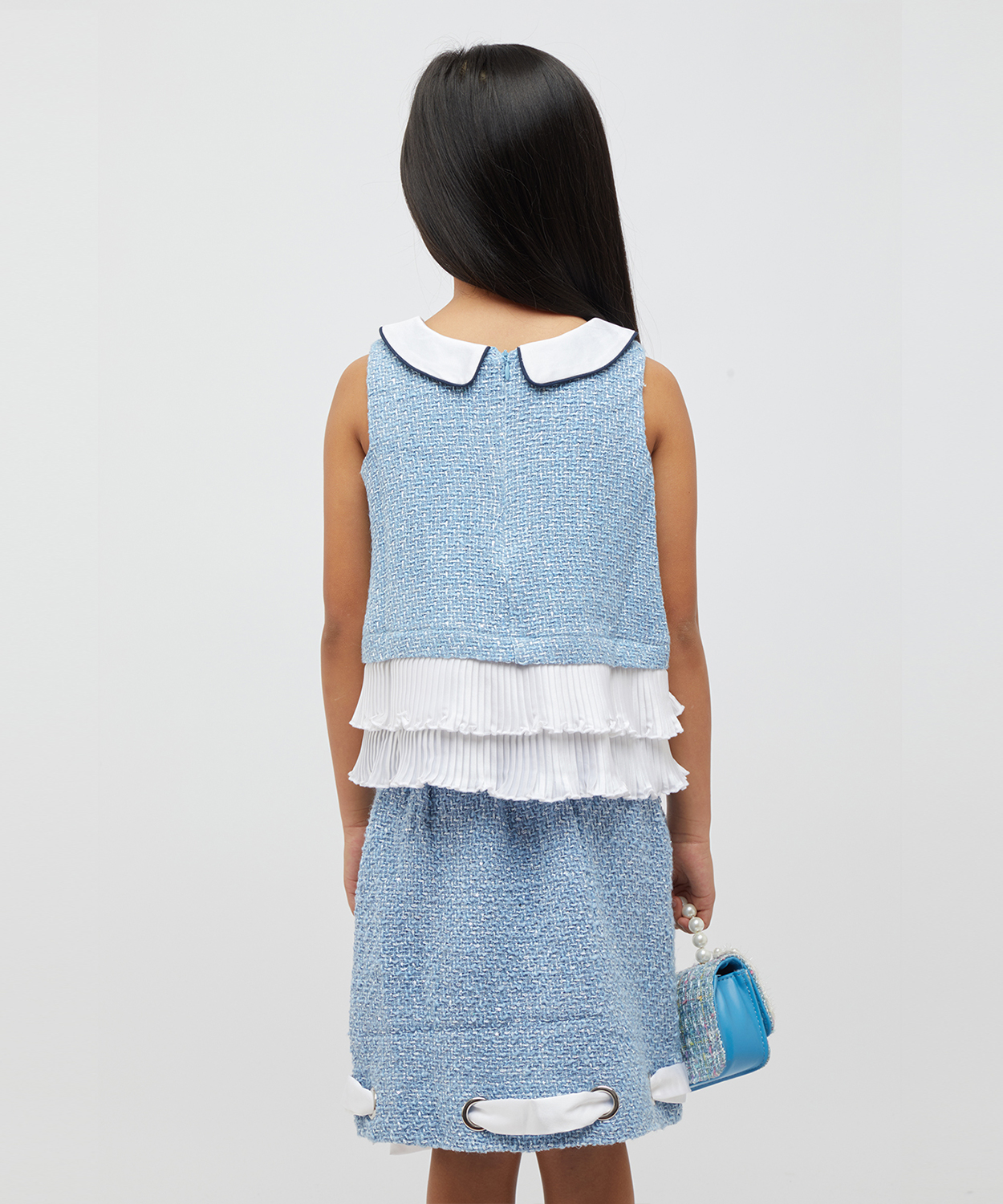 Blue And White Pleated Top