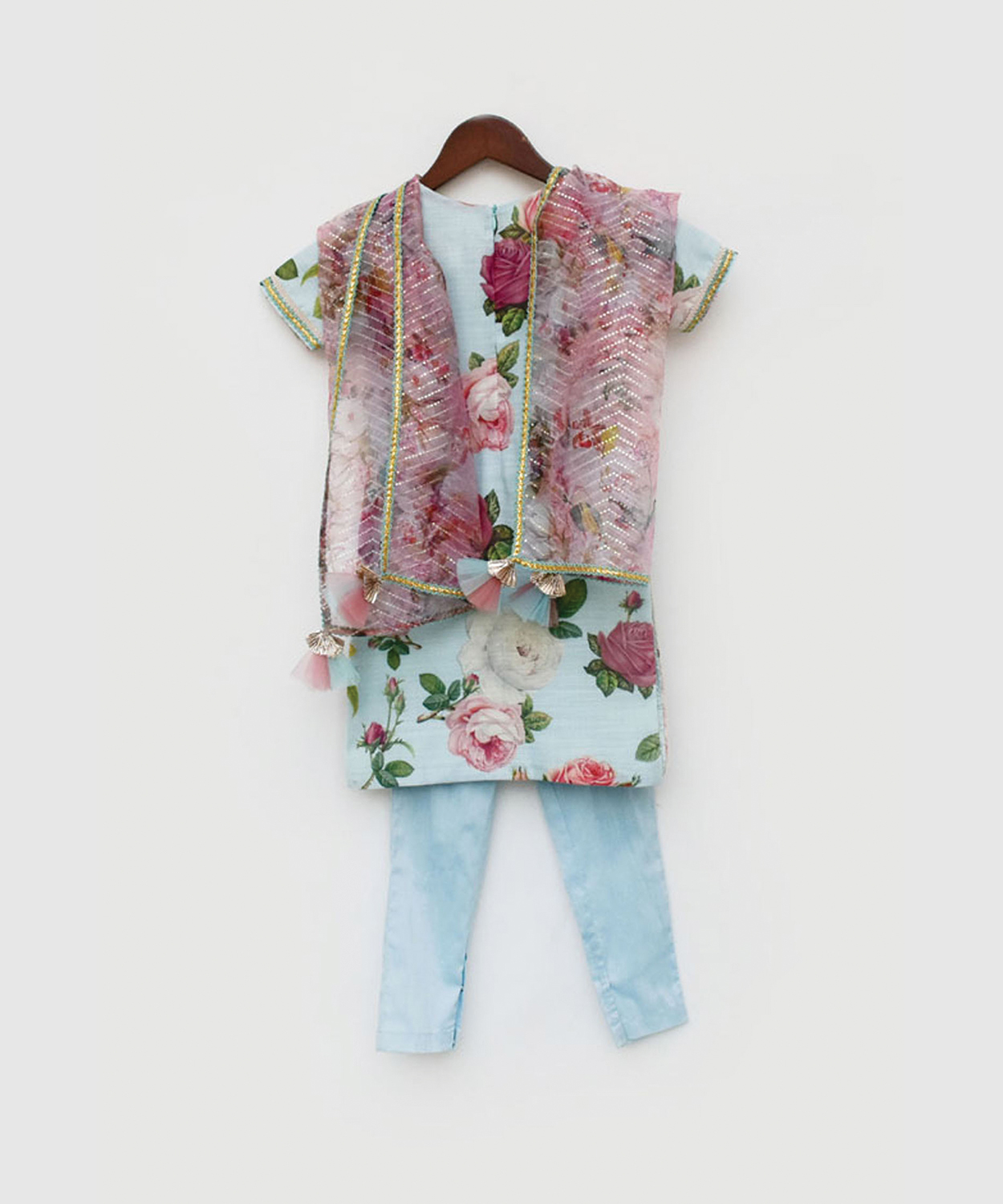 Blue Floral Print Kurti And Pant