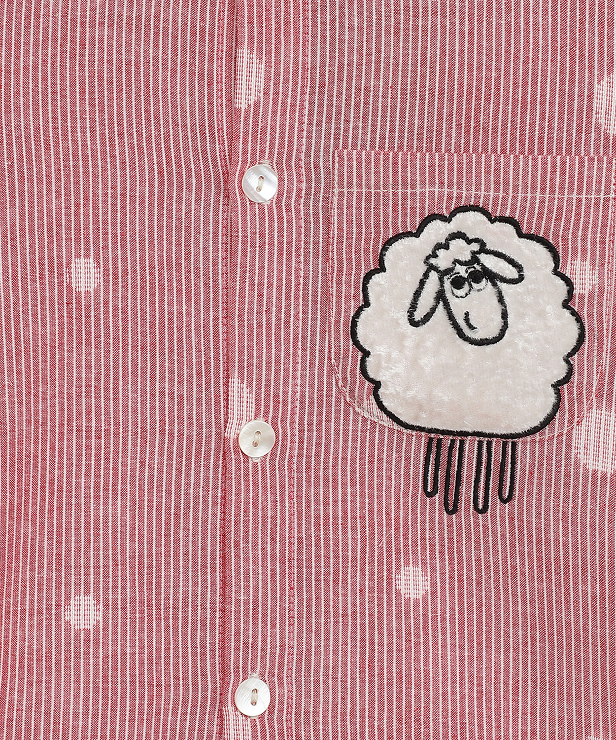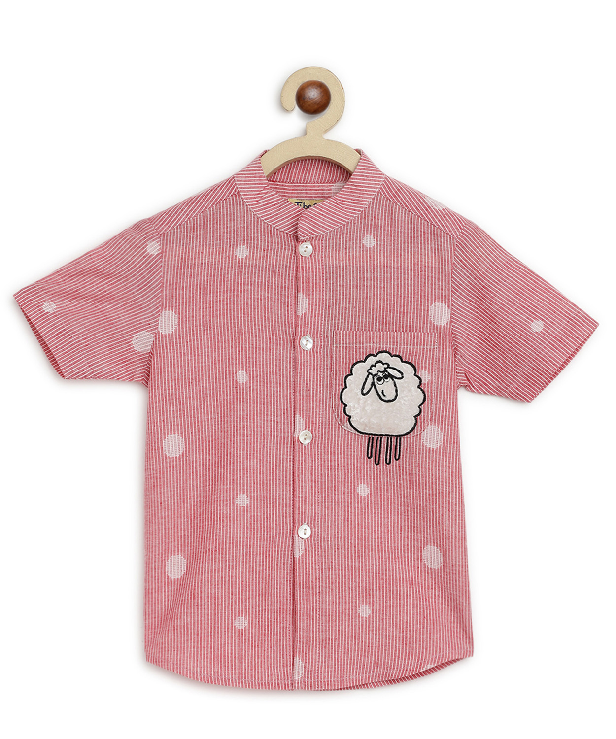 Boy Sheep Embroidered Cotton Shirt - Pink