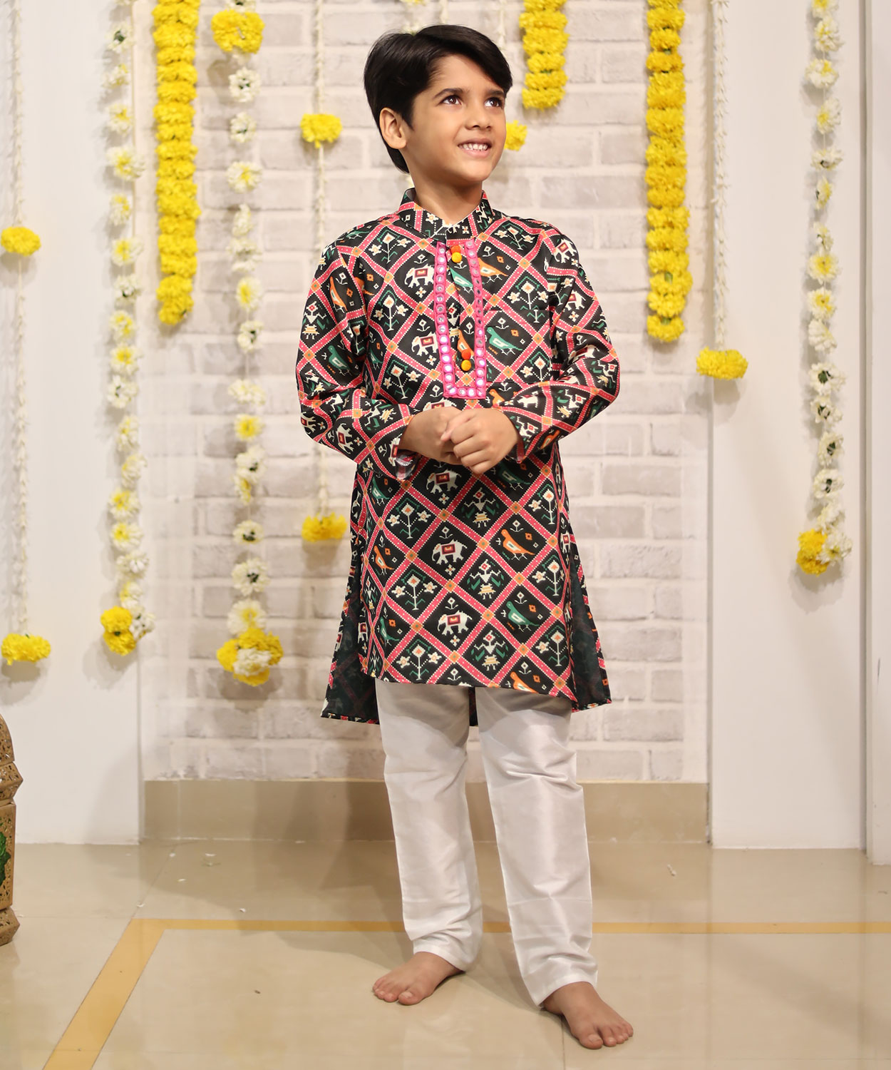 Dark Green Patola Printed Kurta With Pyjama