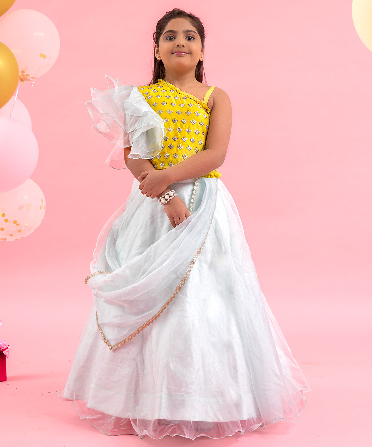Embroidered Crop Top With Attached Dupatta And Lehenga
