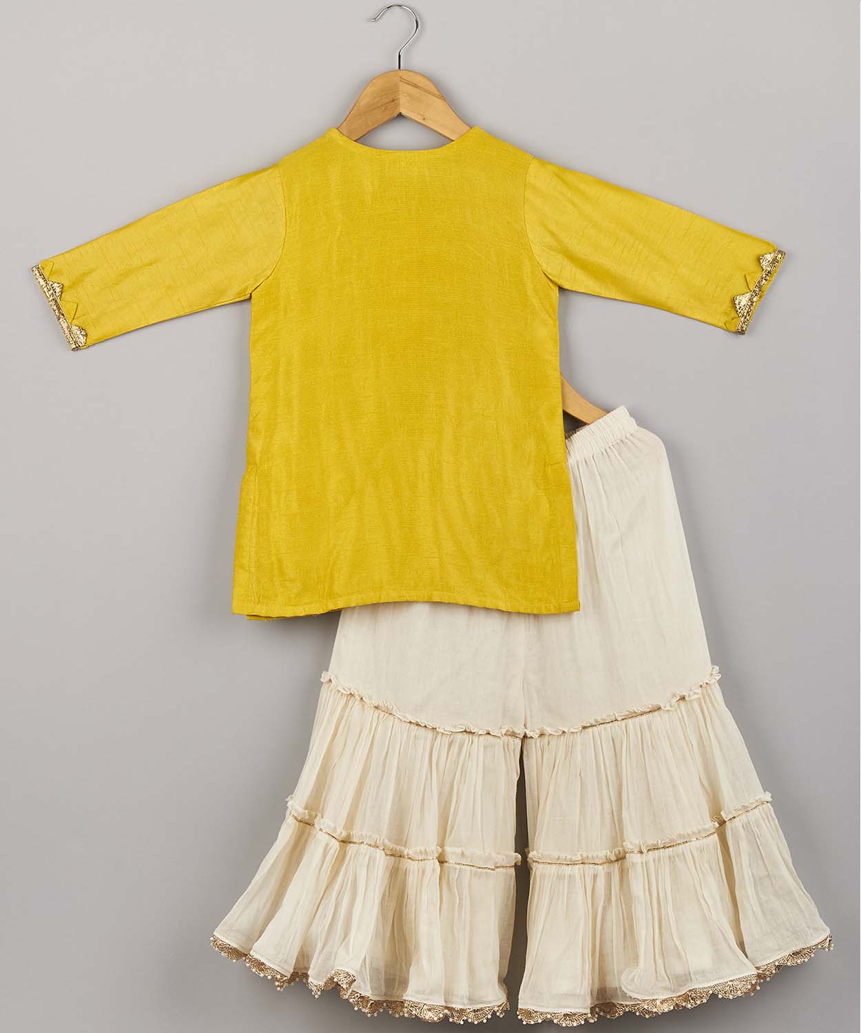 Embroidered Kurta And Double Layer Lace Work Sharara