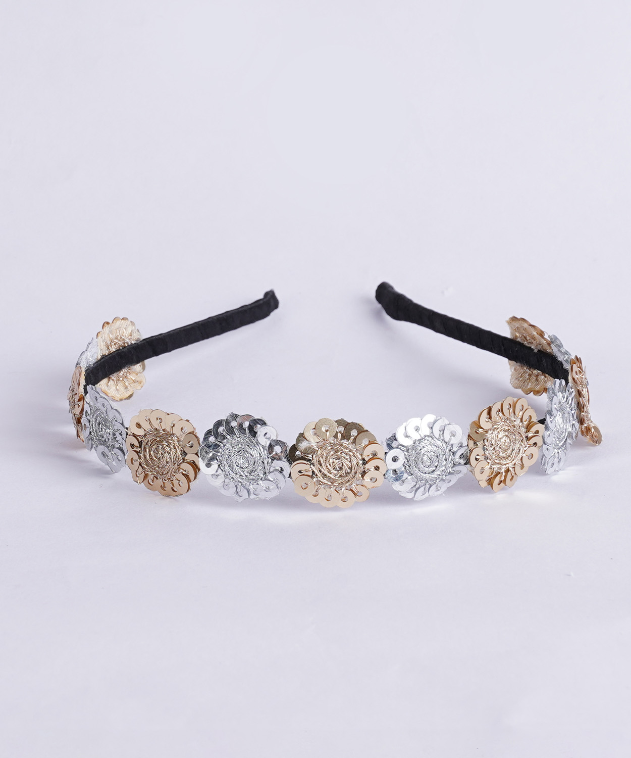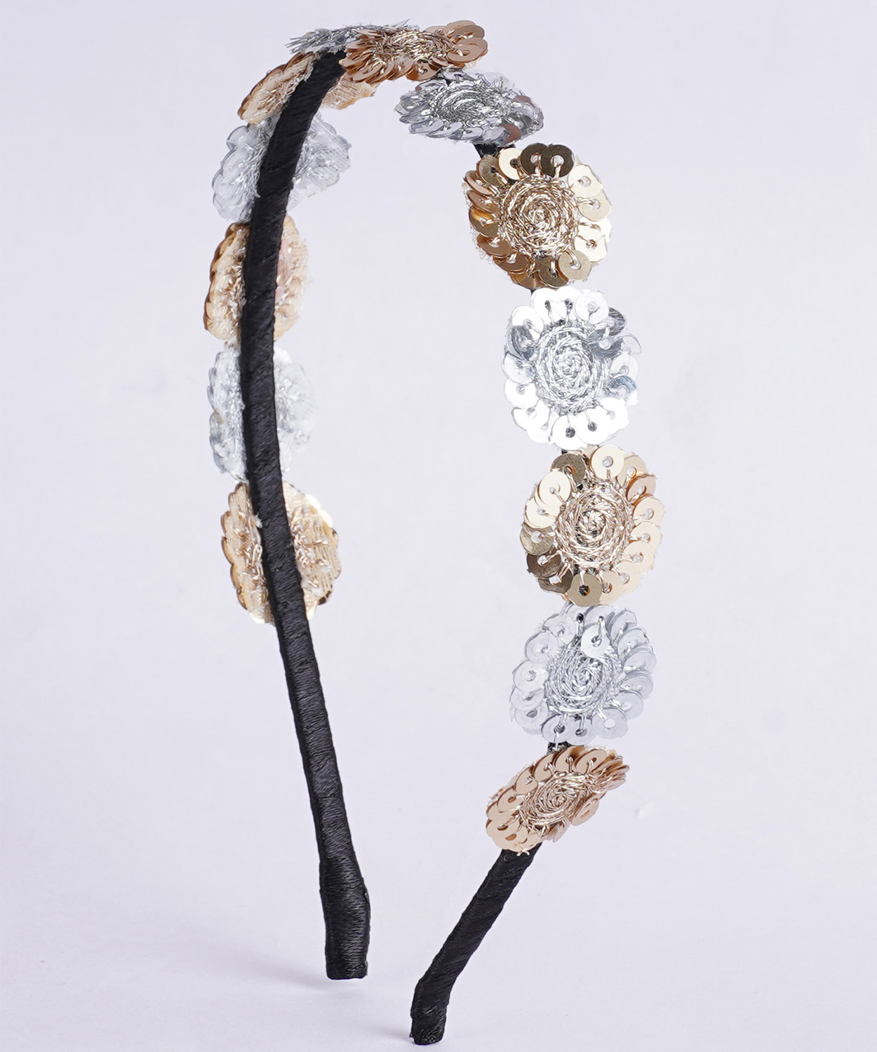 Floral Threaded Sequin Hairband - Black, Gold, Silver