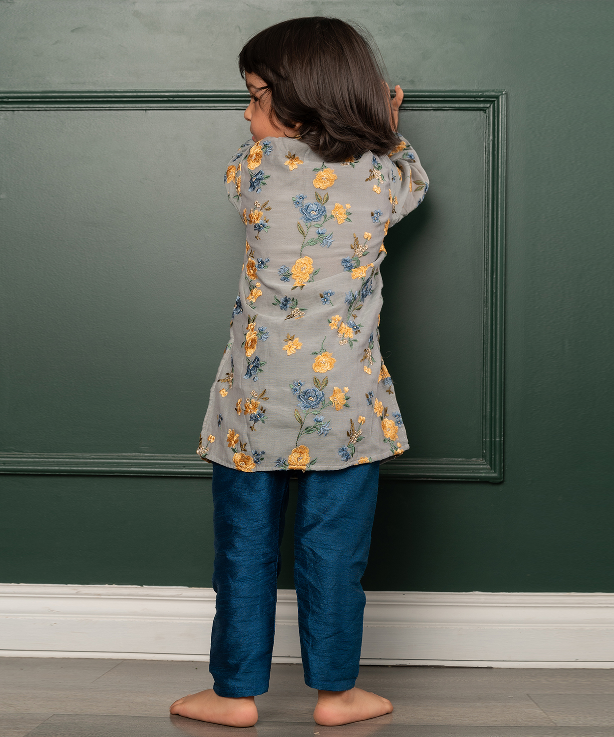Flower Embroidered Chanderi Kurta With Pyjama