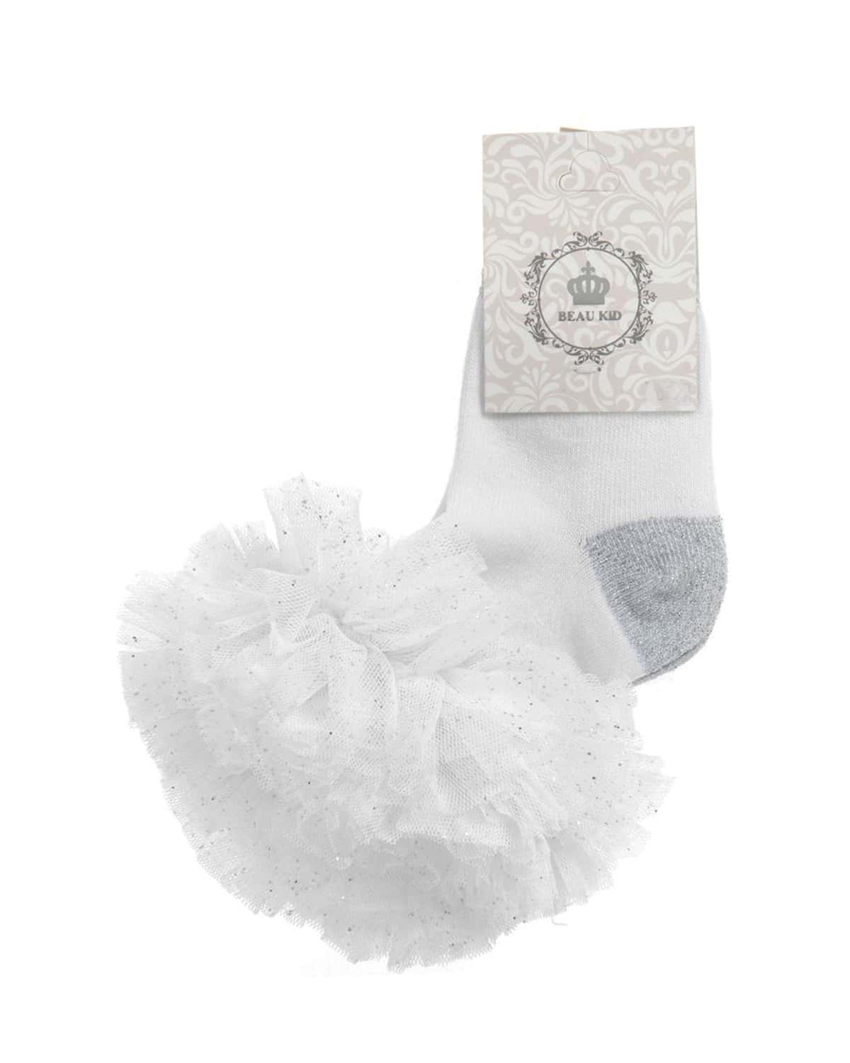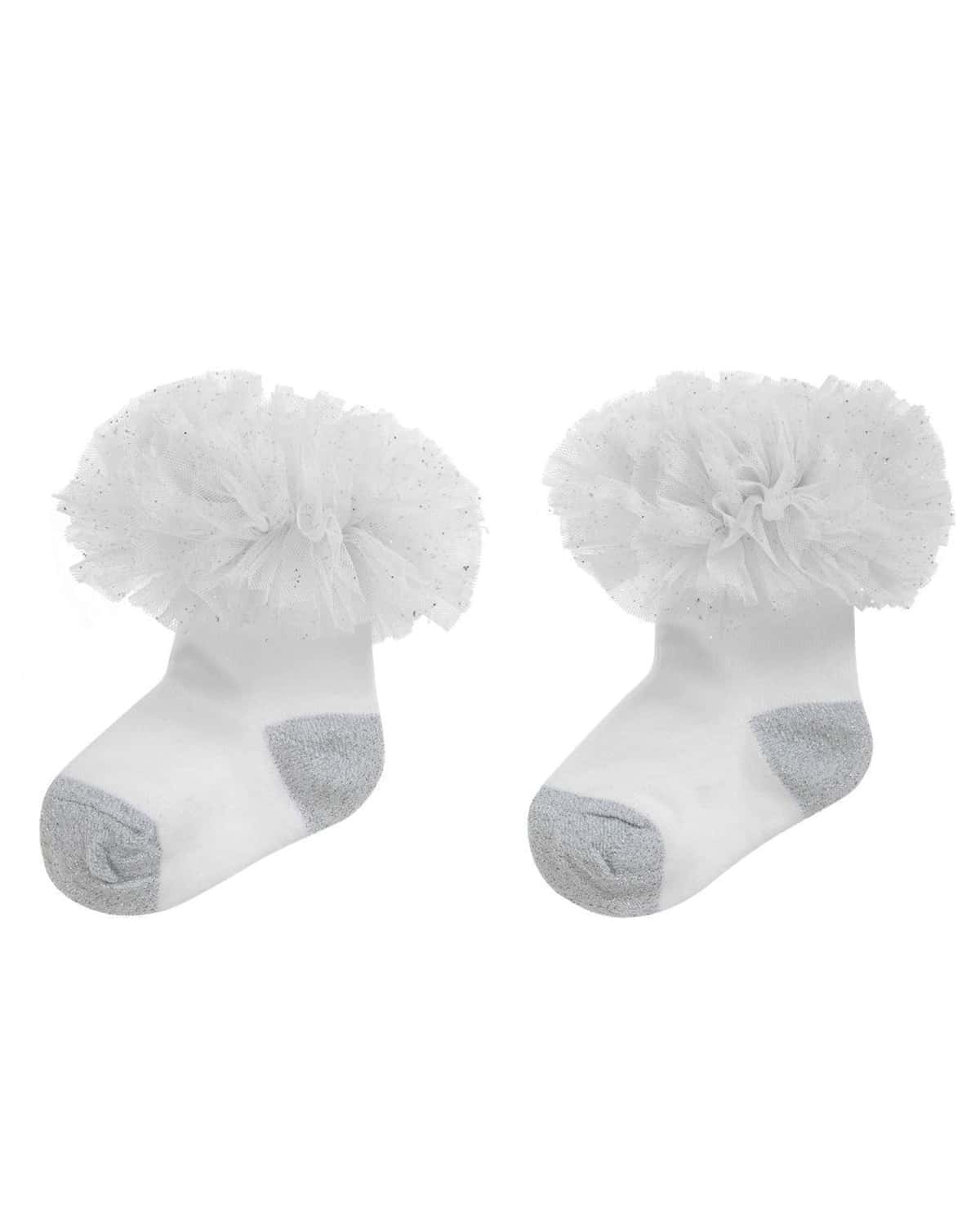 Girls White Sock With Silver Glitter Detailing