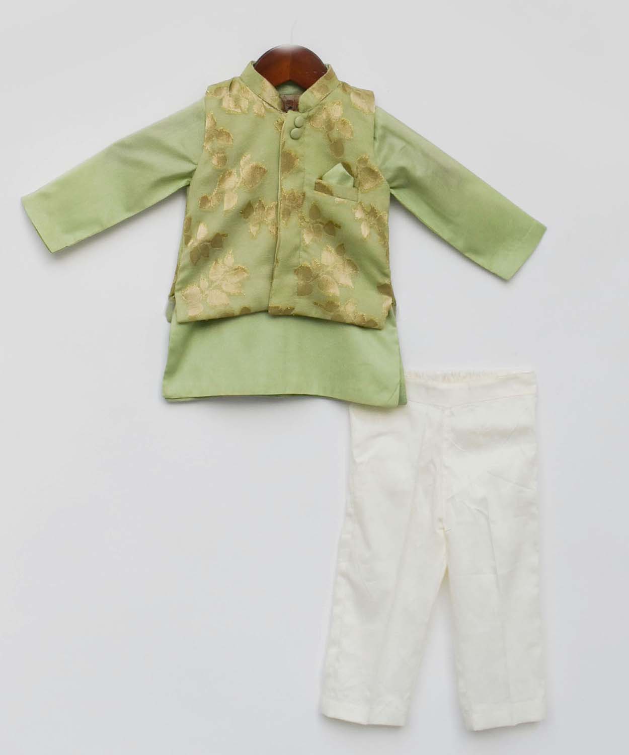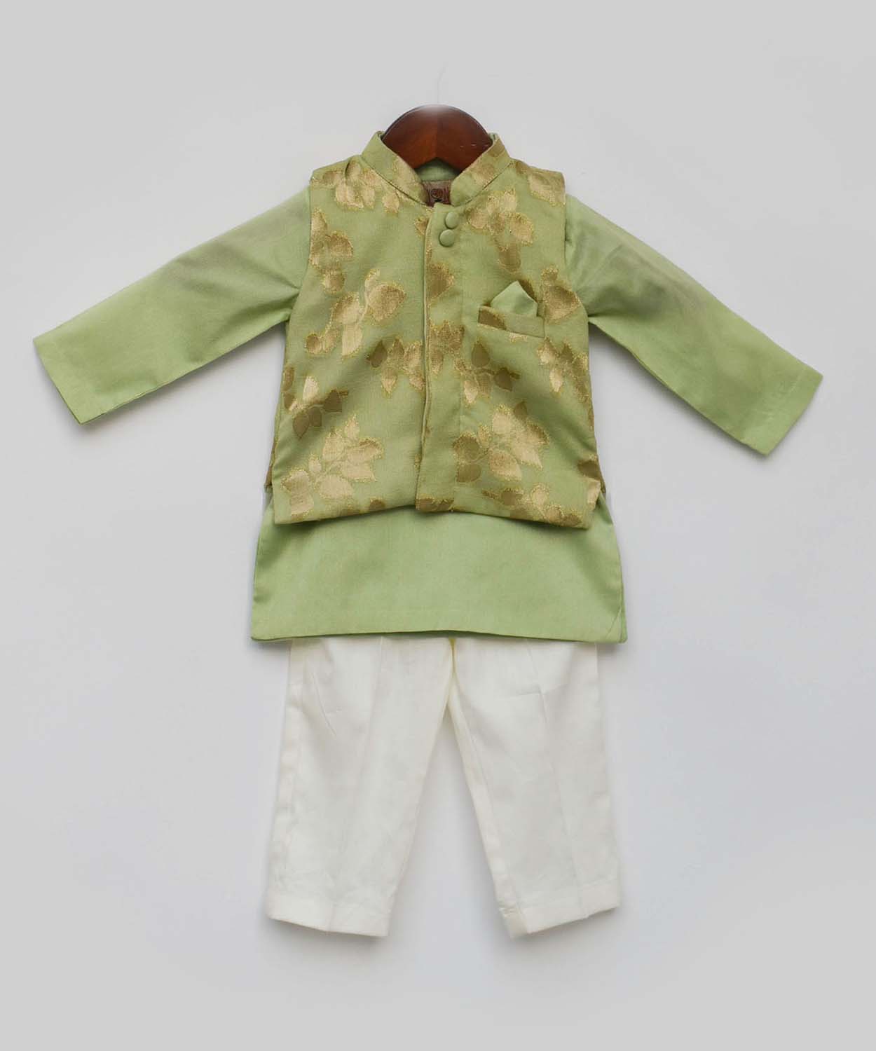 Green Chanderi Brocade Jacket With Kurta And Pant