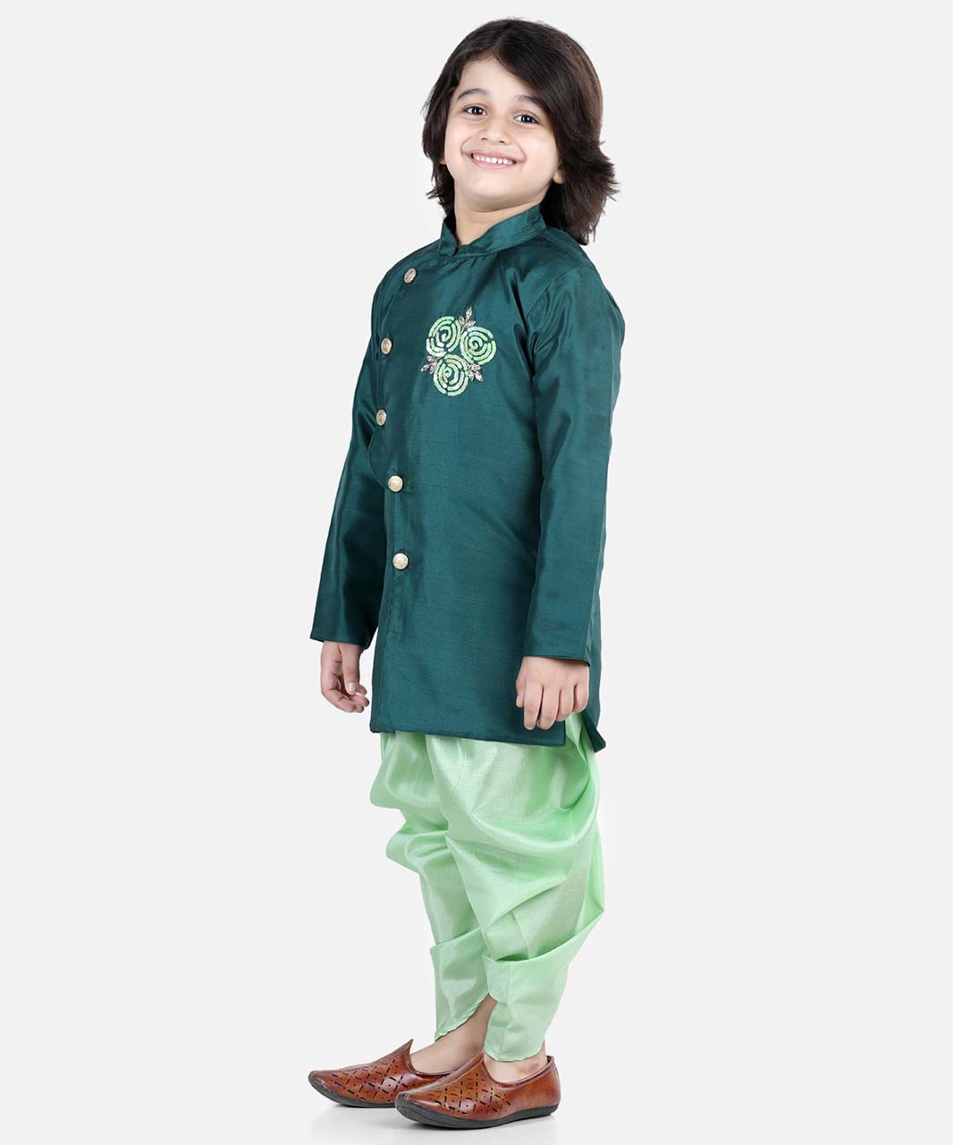 Hand Embroidered Kurta Dhoti for Boys-Green