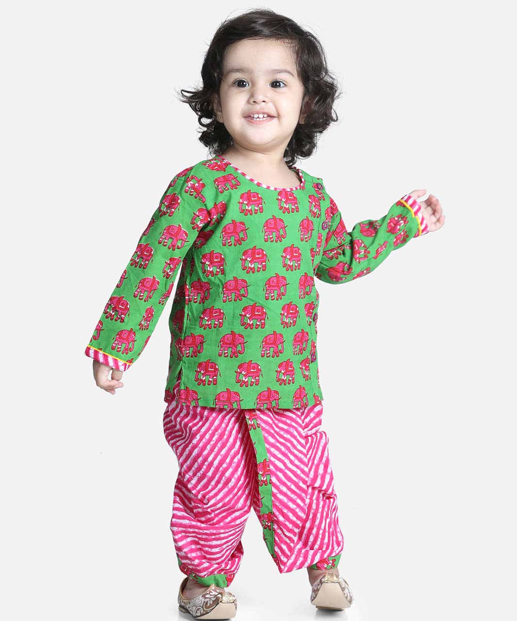 Hathi Print Infant Cotton Dhoti kurta-Green