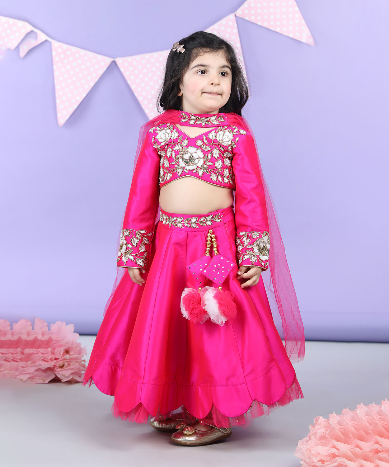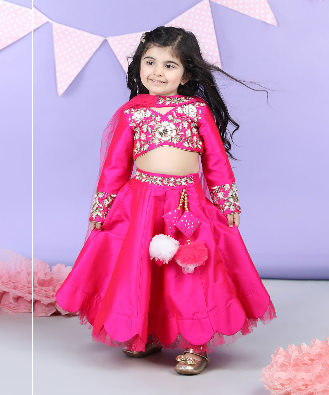 Heavy Embroidered Blouse With Scalloped Lehenga And Chunni