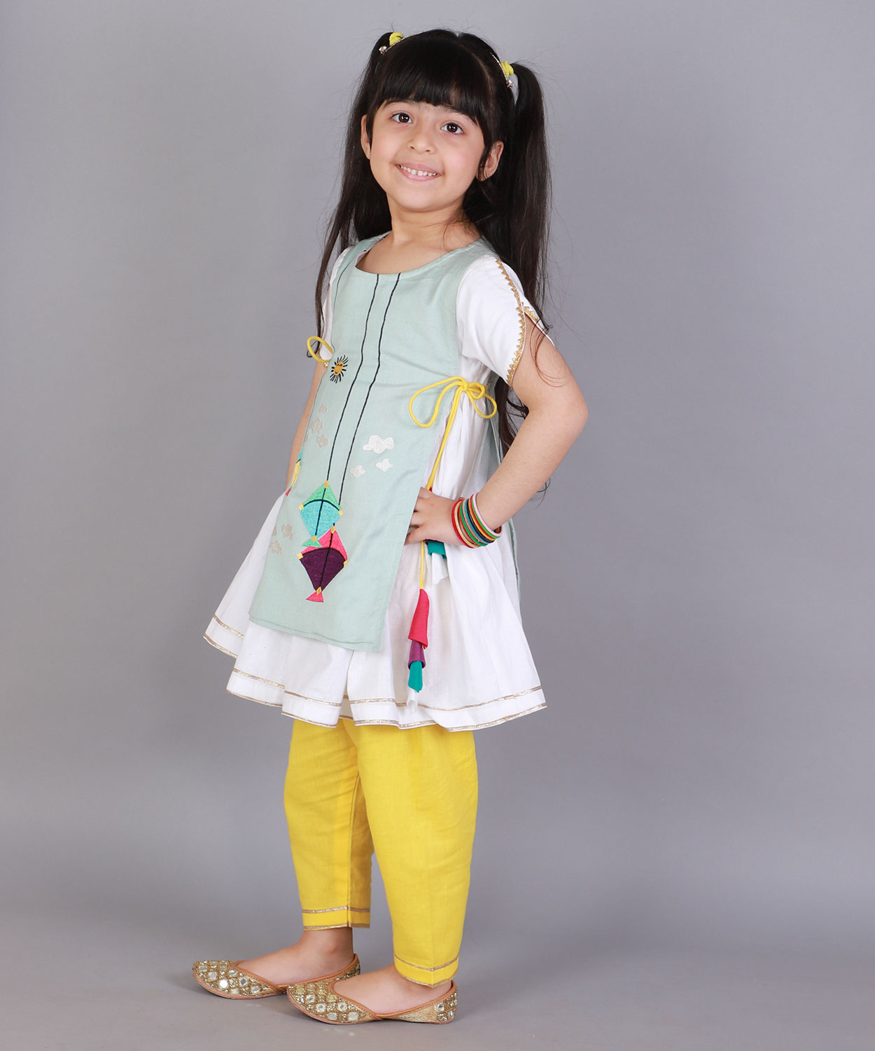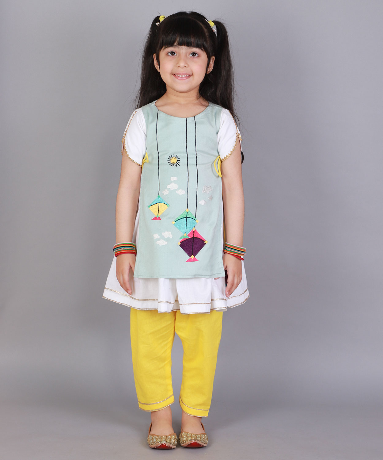 Kite Embroidered Blue White Frock Pyjama Set
