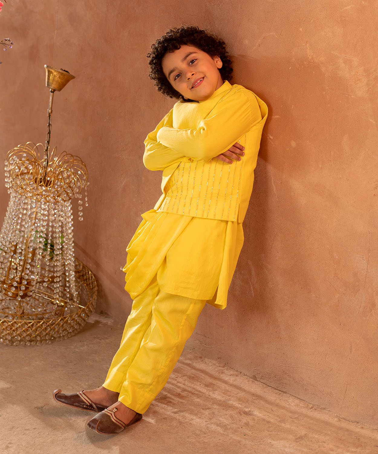 Meherzad -Embroidered Organic Cotton Dobby Yellow Nehru Jacket