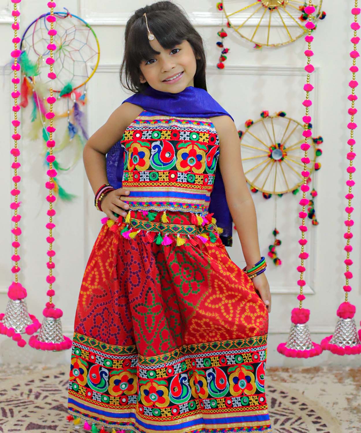 Navratri Bandhani Halter Neck Chaniya Choli With Dupatta