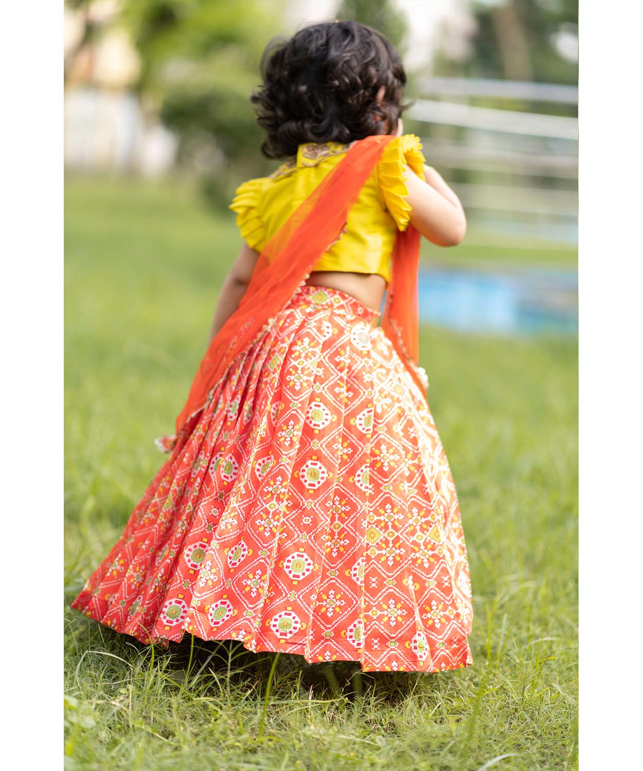 Orange Ikkat Ghagra Set