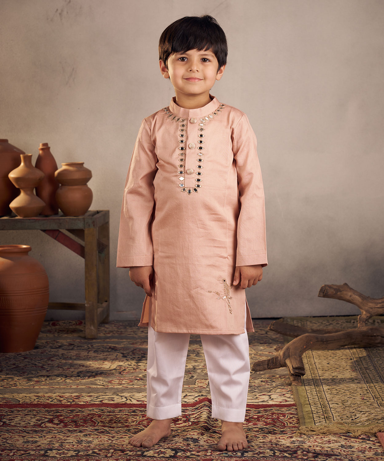 Peach Mirror Work Bird Kurta