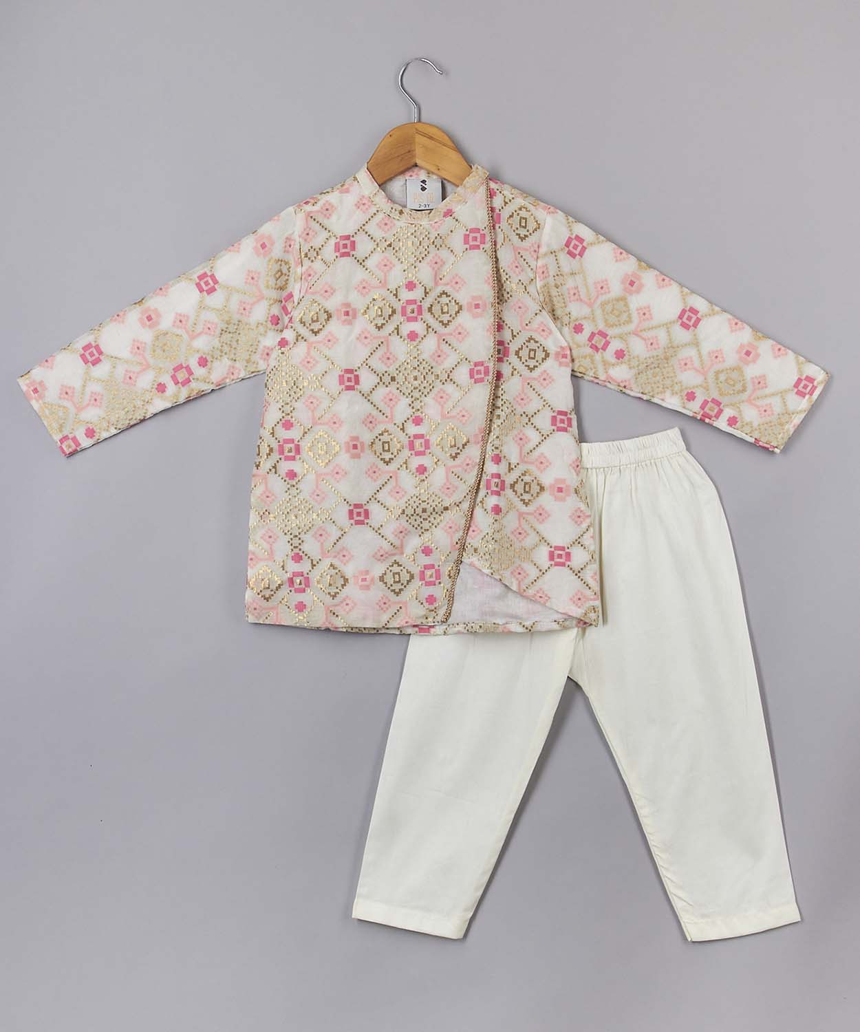 Pink & Gold Stylish Brocade Kurta With Pyjama
