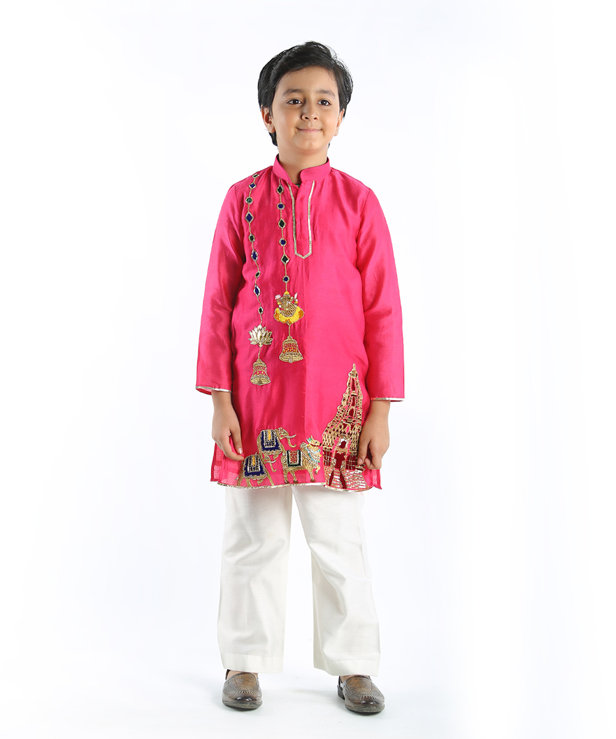 Pink Temple Embellished Kurta Set