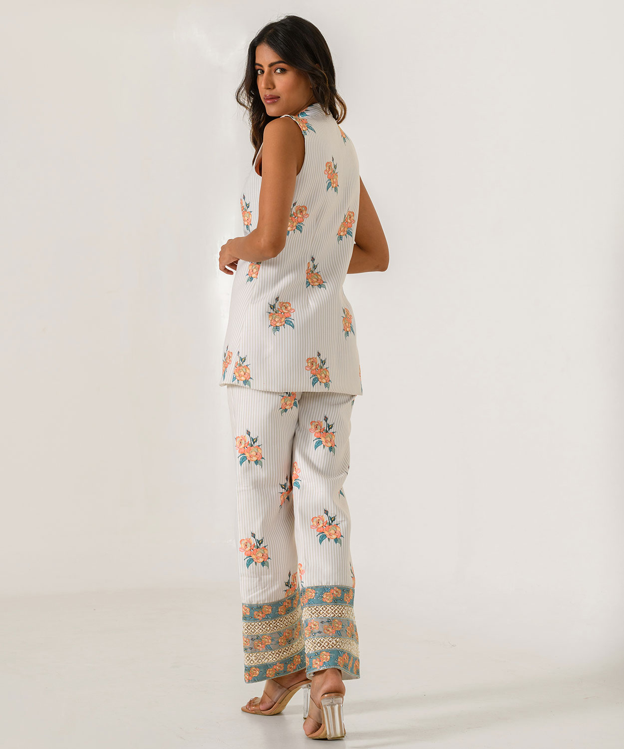 Pista Green Striped Pant Suit