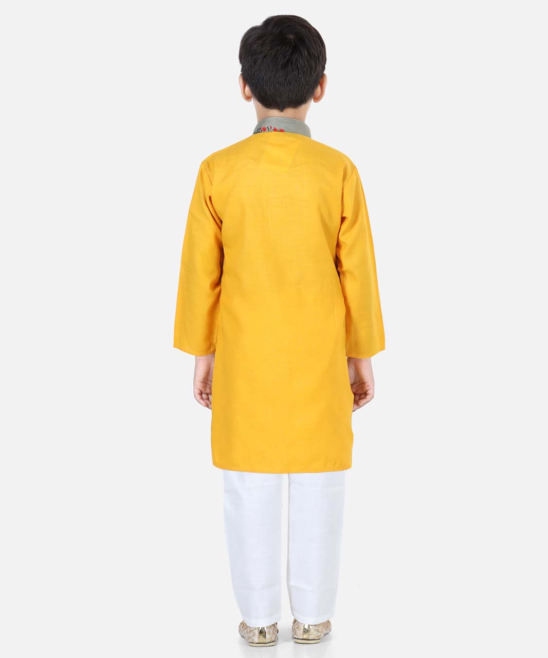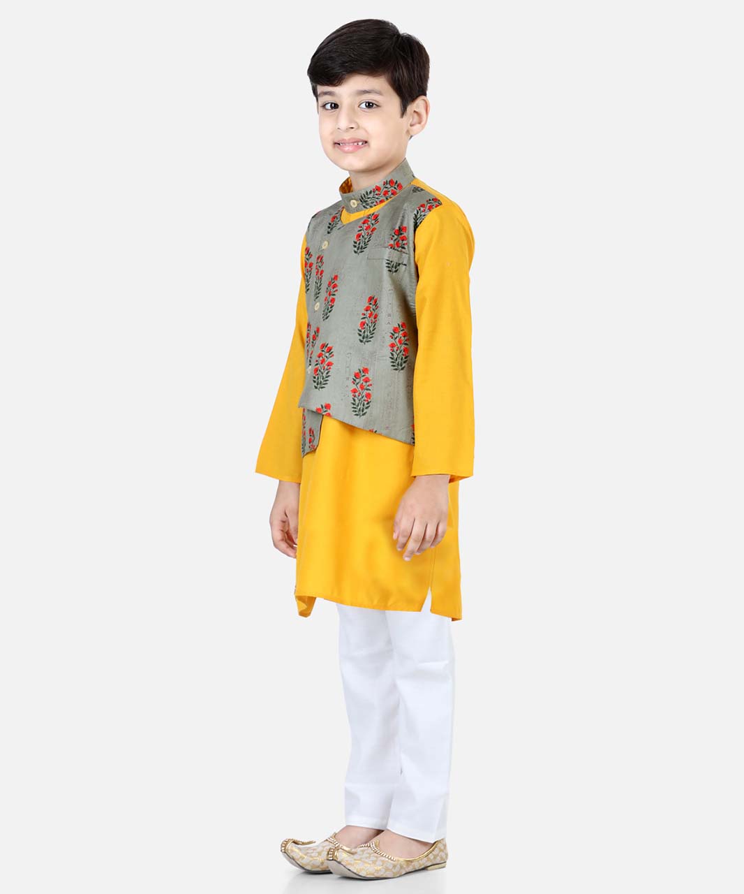 Printed Attached Jacket Cotton Kurta Pajama for Boys-Gray