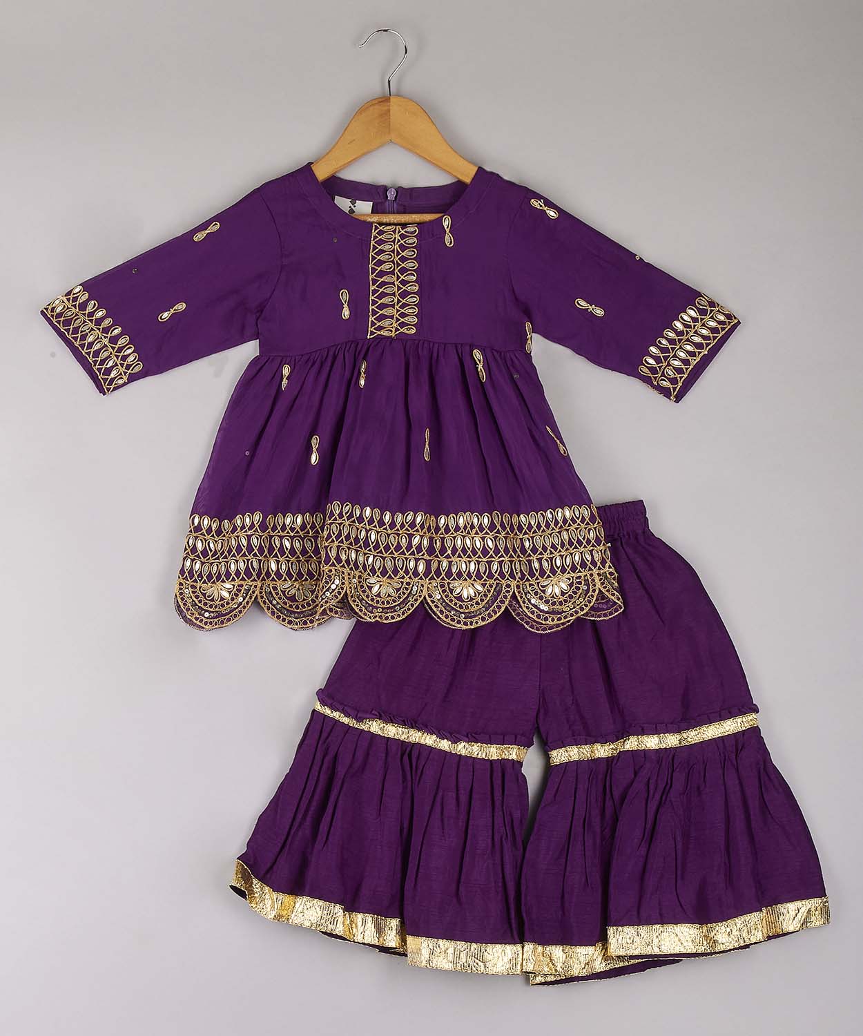 Purple Embroidered Kurta With Sharara