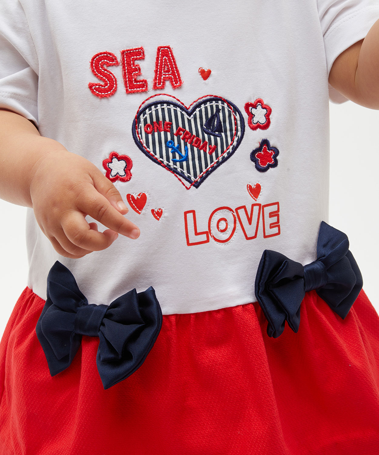 Red Solid Embroidery Dress