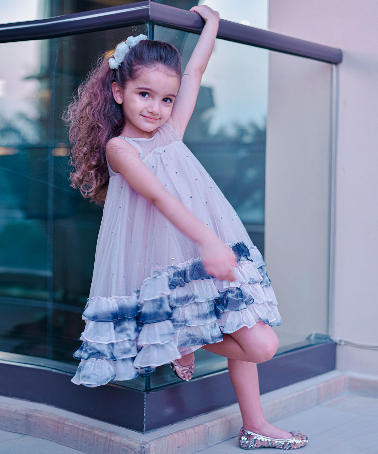 Tie Dyed Silk Chiffon Frills Dress