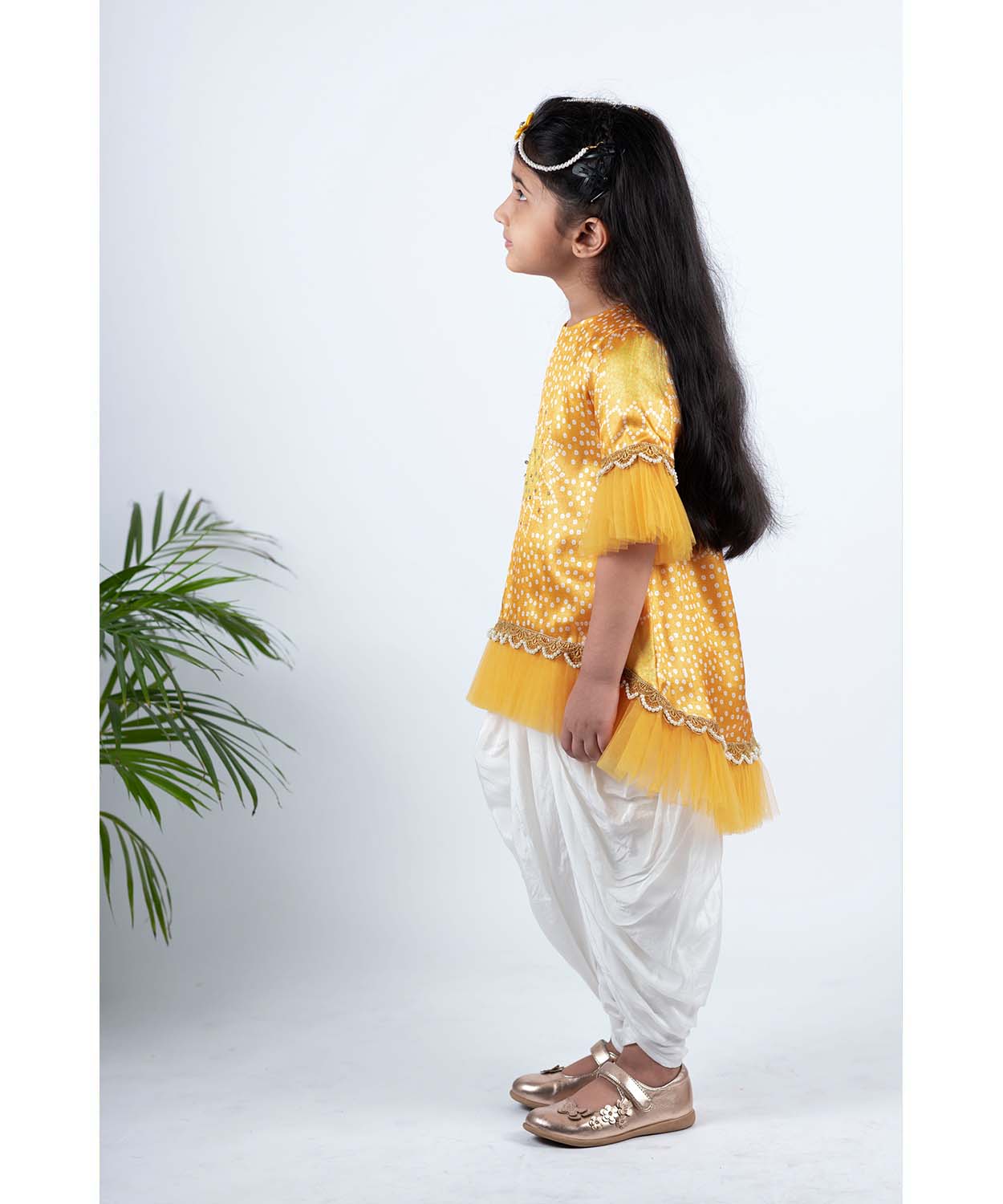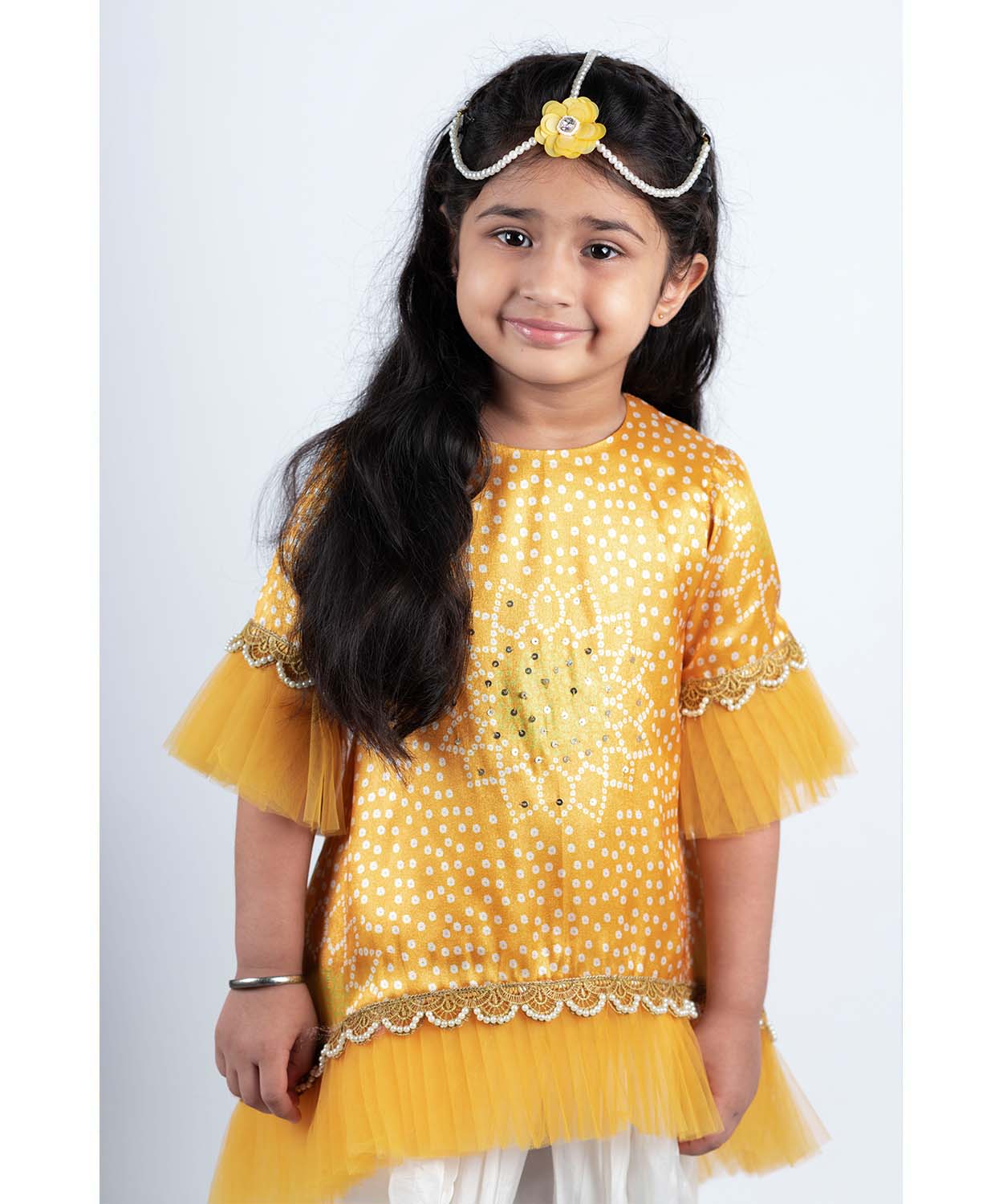 Yellow Bhandej Kurta Patiala