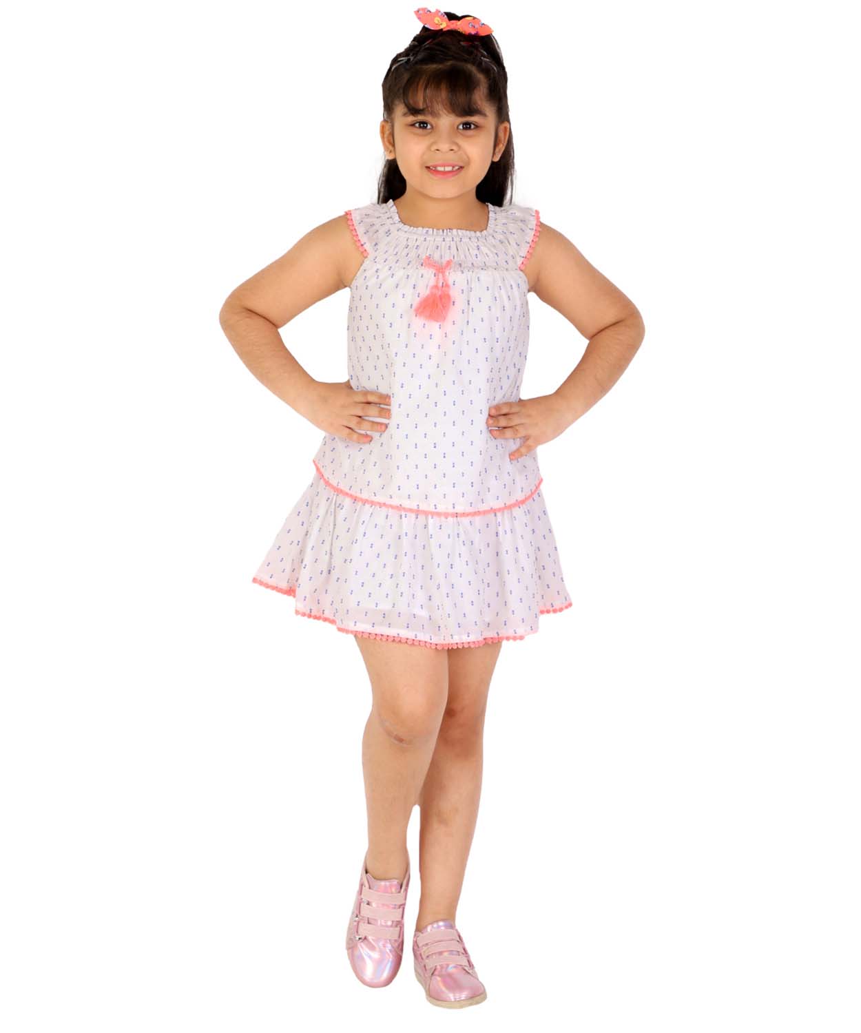 White Cotton With Blue Dobby Dots